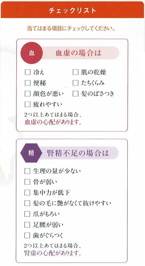 血虚と腎精不足のチェックをしてみよう